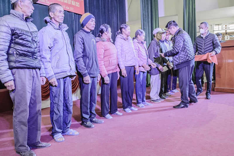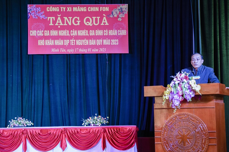 Đại diện Công ty xi măng Chinfon trao tặng quà Tết tại xã Minh Tân