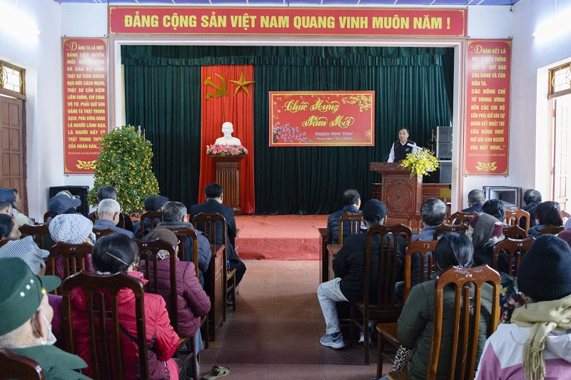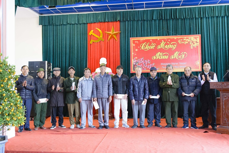 Đại diện Côn ty xi măng Chinfon trao tặng quà Tết tại xã Gia Đức