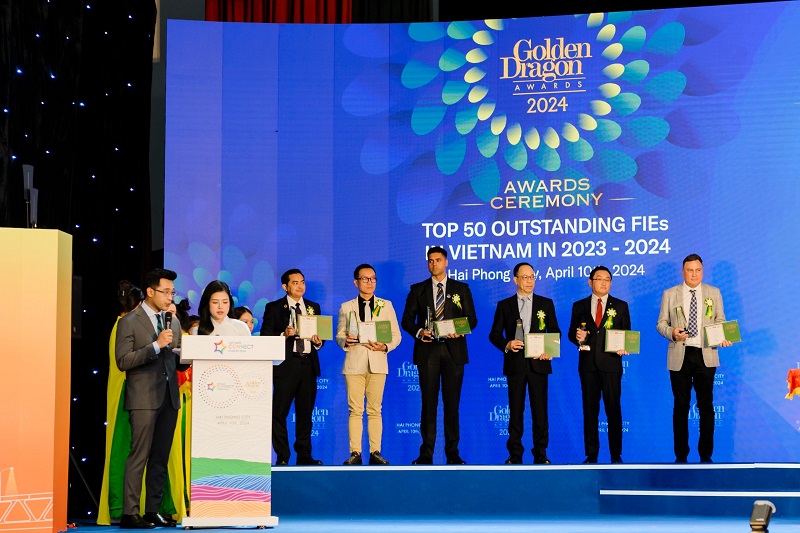 In 2024, the Organizing Committee received more than 486 nominations and registrations to participate. Through 2 rounds of survey and review, Golden Dragon Awards 2024 announced and honored the top 50 typical FDI enterprises in 6 industry groups, including: Processing and manufacturing industry; digital technology & digital services; financial and insurance services; infrastructure, industrial park and real estate development; education and health care; agriculture, food and beverages.