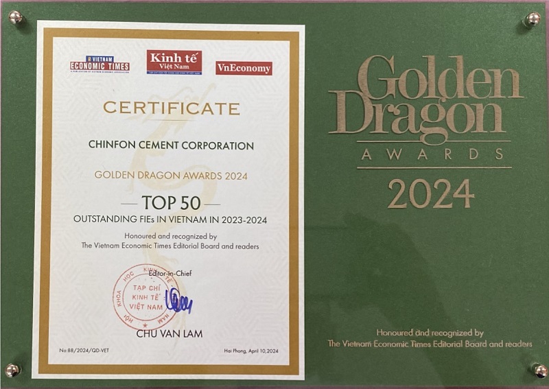 On April 10, 2024, CHINFON CEMENT CORPORATION has received Golden Dragon Award (GDA) at the GDA Ceremony held at Hai Phong City's Conferences Centre. This is the 22nd consecutive year the Company received the Award.