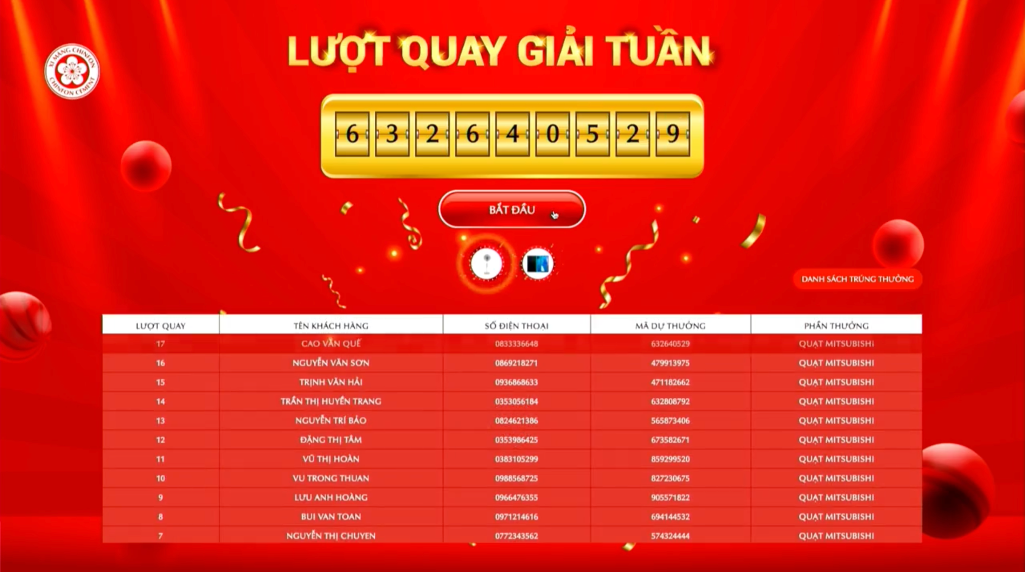 Xi măng Chinfon sẽ sử dụng phần mềm quay số và livestream trên fanpage Xi măng Chinfon để chọn ra những khách hàng may mắn trúng giải.