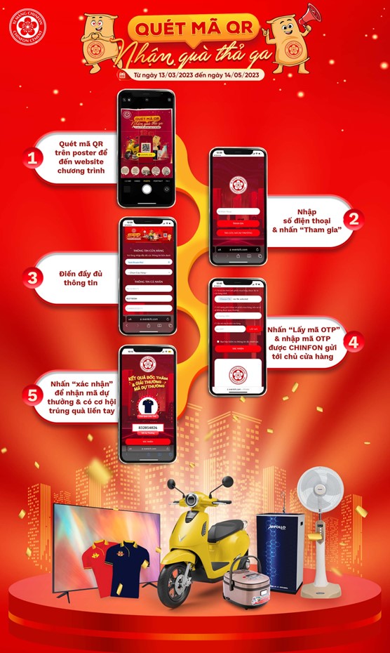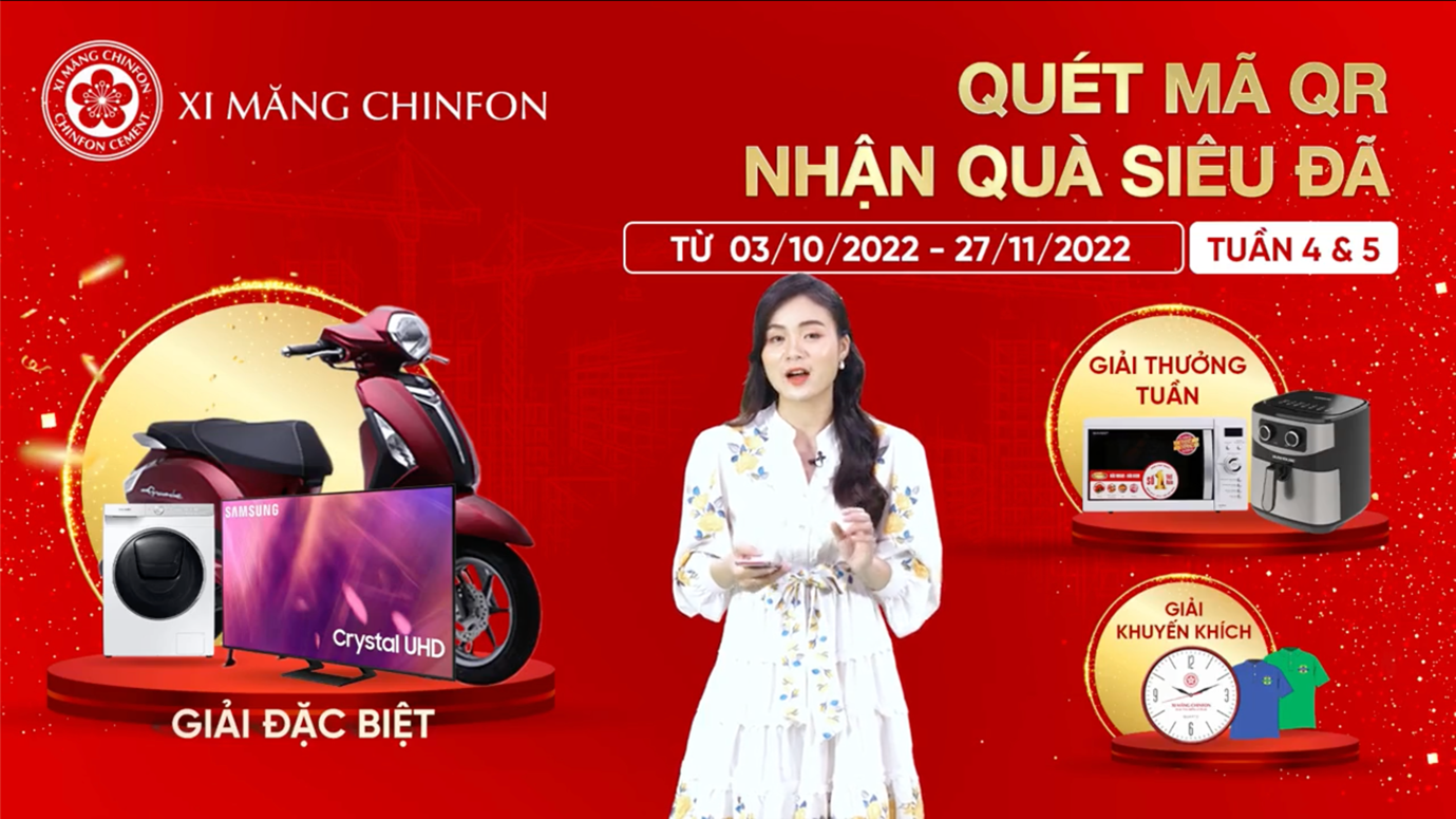 Tiếp nối thành công đó, năm 2023 CHINFON chính thức mang đến chương trình siêu khuyến mãi: “QUÉT MÃ QR - NHẬN QUÀ THẢ GA”. Chương trình được triển khai rầm rộ trên khắp các cửa hàng VLXD là đại lý phân phối chính thức của Xi măng CHINFON tại 6 tỉnh thành phía Bắc.