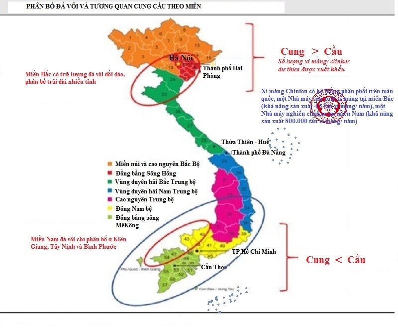 Phân bổ đá vôi và tương quan cung, cầu xi măng tại các vùng, miền thị thường xi măng Việt Nam