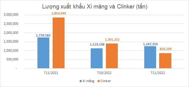Sản lượng tiêu thụ xi măng nội địa trong tháng 11 giảm 2% so với tháng 10, đạt 5,26 triệu tấn. Lũy kế 11 tháng, tiêu thụ xi măng tại thị trường trong nước ước đạt 57,19 triệu tấn. Xuất khẩu xi măng và clinker tháng 11 vẫn giữ đà tăng, đạt 2,51 triệu tấn. 11 tháng xuất khẩu xi măng và clinker ước đạt 28,87 triệu tấn.