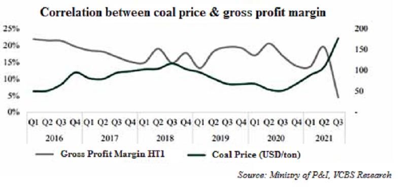 Production costs remain high: Imported coal price remained at 154 USD/ton, 90% higher yoy, greatly influenced by the world energy market. Meanwhile, the domestic coal price is currently lower than the world's price about 100 USD/ton, but has been adjusted up by 9 - 12% yoy since August 2021, in 2022 the domestic coal price will also be adjusted up (due to higher production costs of underground coal mining) put more pressure on the cost of cement production in the country.