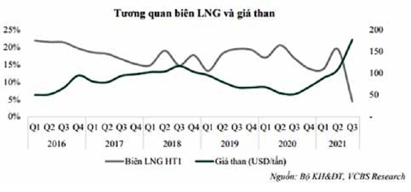 Giá than nhập khẩu vẫn giữ ở mức 154 USD/tấn, cao hơn 90% yoy, chịu ảnh hưởng lớn từ thị trường năng lượng Thế giới. Trong khi đó, giá than trong nước hiện tại đang thấp hơn so với Thế giới với khoảng 100 USD/tấn, tuy nhiên đã điều chỉnh tăng 9 - 12% yoy từ tháng 8/2021 và sang năm 2022 thì giá than trong nước có thể điều chỉnh tăng (do chi phí sản xuất khai thác than hầm lò cao hơn) gây thêm áp lực cho giá thành sản xuất xi măng trong nước.