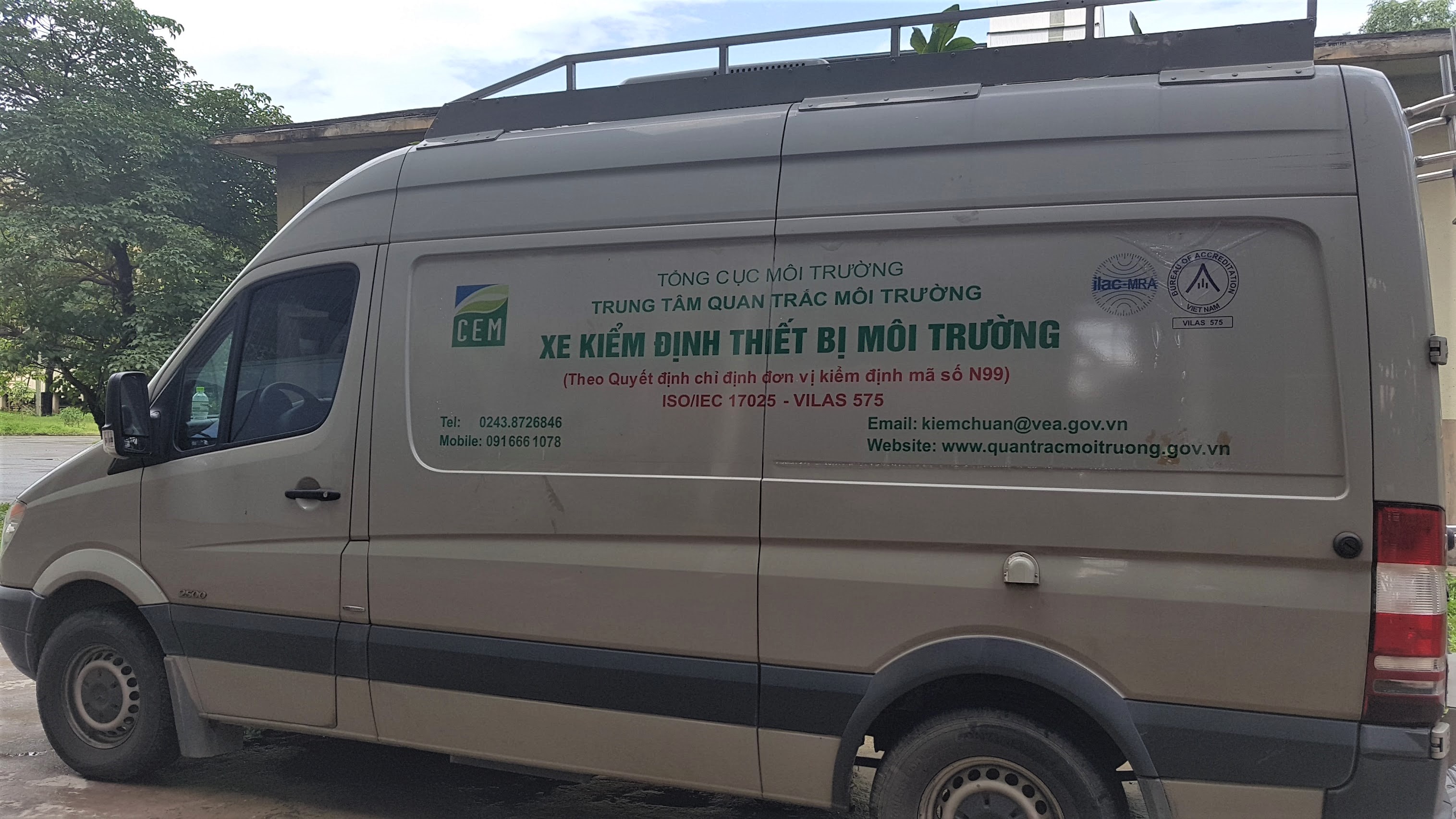 Xe chuyên dụng của Trung tâm quan trắc môi trường thuộc Tổng cục môi trường tới kiểm định thiết bị