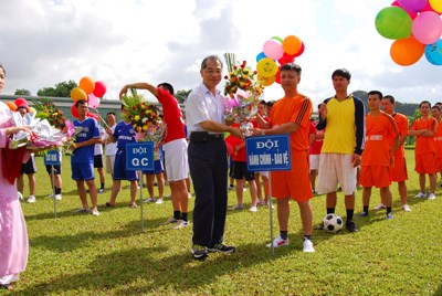 Ông Tony Liu tặng hoa các đội bóng tham dự Giải bóng đá Chinfon